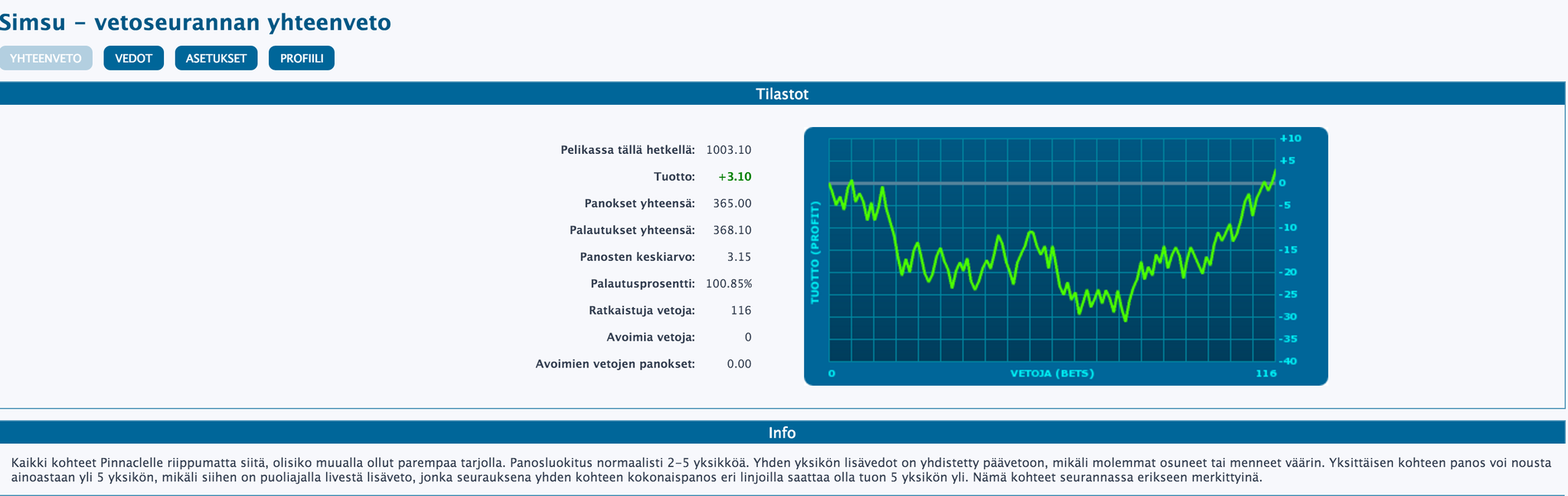Varsinkin, jos pelaa jenkkilajeja singleinä on Pinnaclen tili lähes "pakollinen". Parhaat kertoimet useimmiten, ilman pelkoa henkilökohtaisista panosrajoituksista. Lisäksi nykyään Pinnaclen voitothan Suomeen ovat verovapaita! Mikäli vielä ei ole tiliä, niin TÄSTÄ voi avata tilin tälle jättiläiselle!